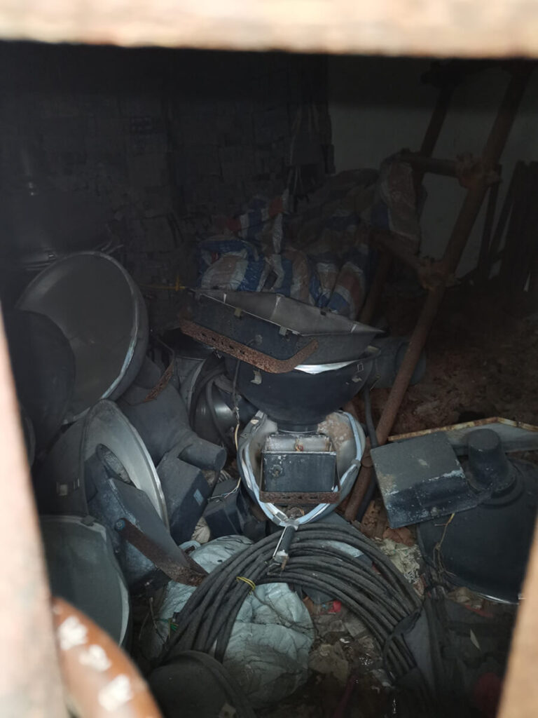 透过梁妃塔一楼的铁门,可以看到里面堆满了各种杂物和垃圾,可惜了一个登塔的地方。
