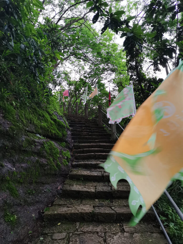 彩旗尽头乃法云洞,门上对联「法眼遥看无际界,云头近览九重天」。这里我觉得”近览“改为”尽览“会不会更好?